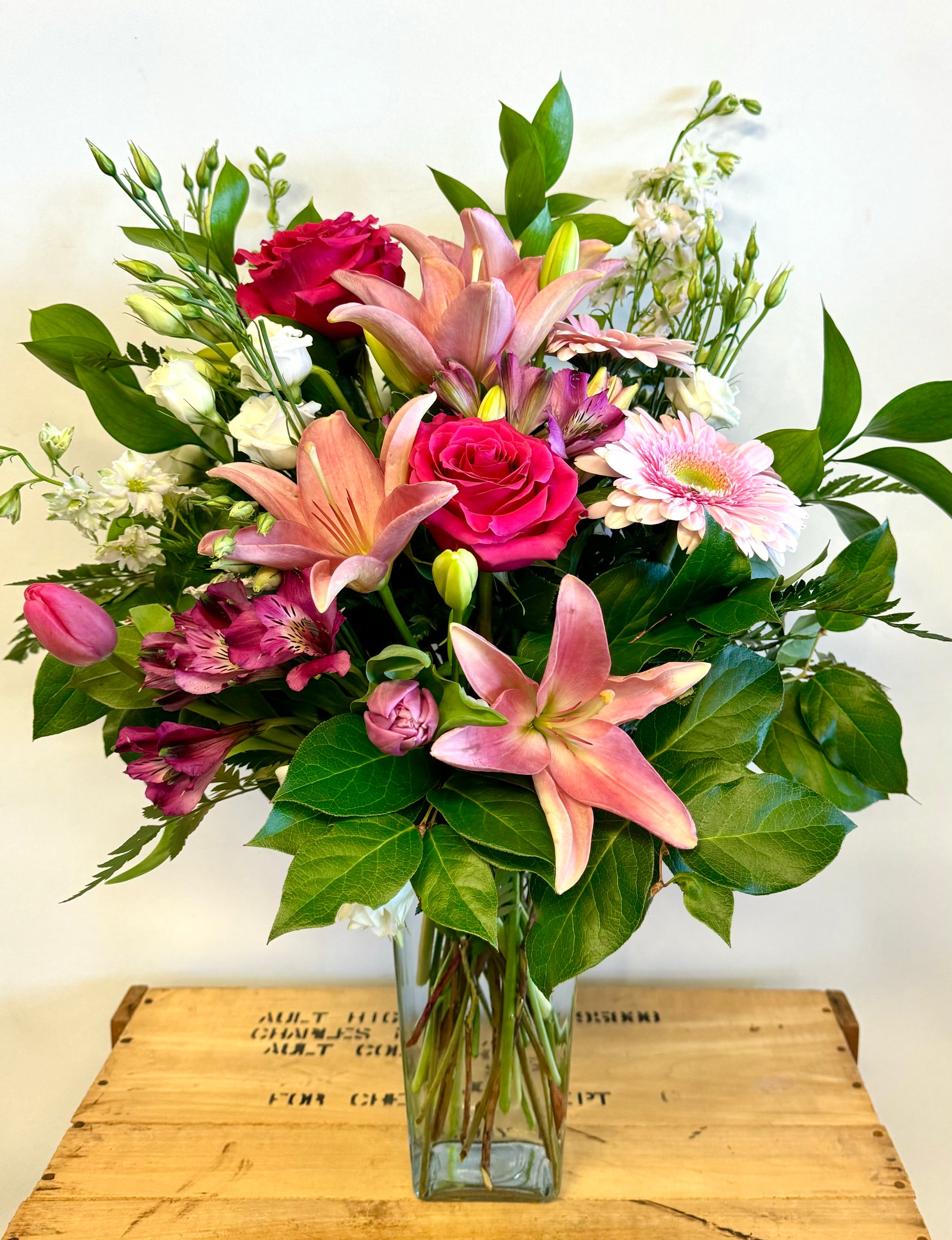 Lavish your loved one with this bouquet of favorite sumptuous and fragrant flowers. Stargazers lilies, rose, snapdragons, gerberas, and hydrangeas.