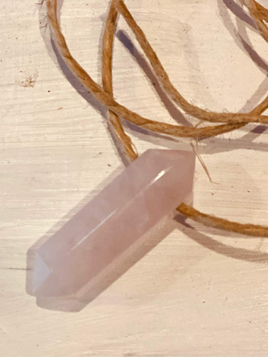 Card says: Rose Quartz opens the heart to all levels of love, including self-love, and friendship. Red roses will help to attract healthy relationships, deepen an existing love or enhance passion and romance.